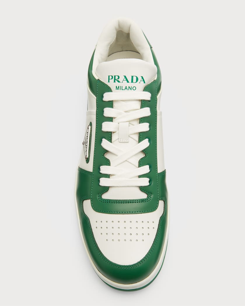 Prada Men S Low Top Leather Downtown Sneakers W Logo Plaqu Eacute Neiman Marcus
